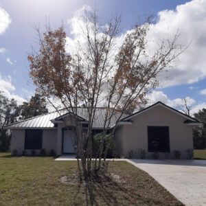 Brand new house, literally finished a few days before we moved in. Metal roof, Windguard windows. Beautiful, and 99% good quality work. Sue was very happy.