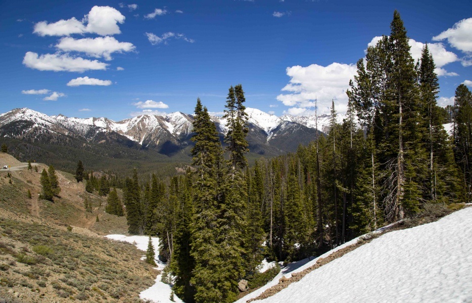 We captured some awesome photographs along the way and once we got further into the mountains the trees did show up. We drove beyond Ketchum and up to about 8,300 feet where we could get a nice look at some of the Sawtooth Mountains, which were still snow capped. We even stepped in a patch of snow along the road which is cool to do in June. For Floridians anyway.