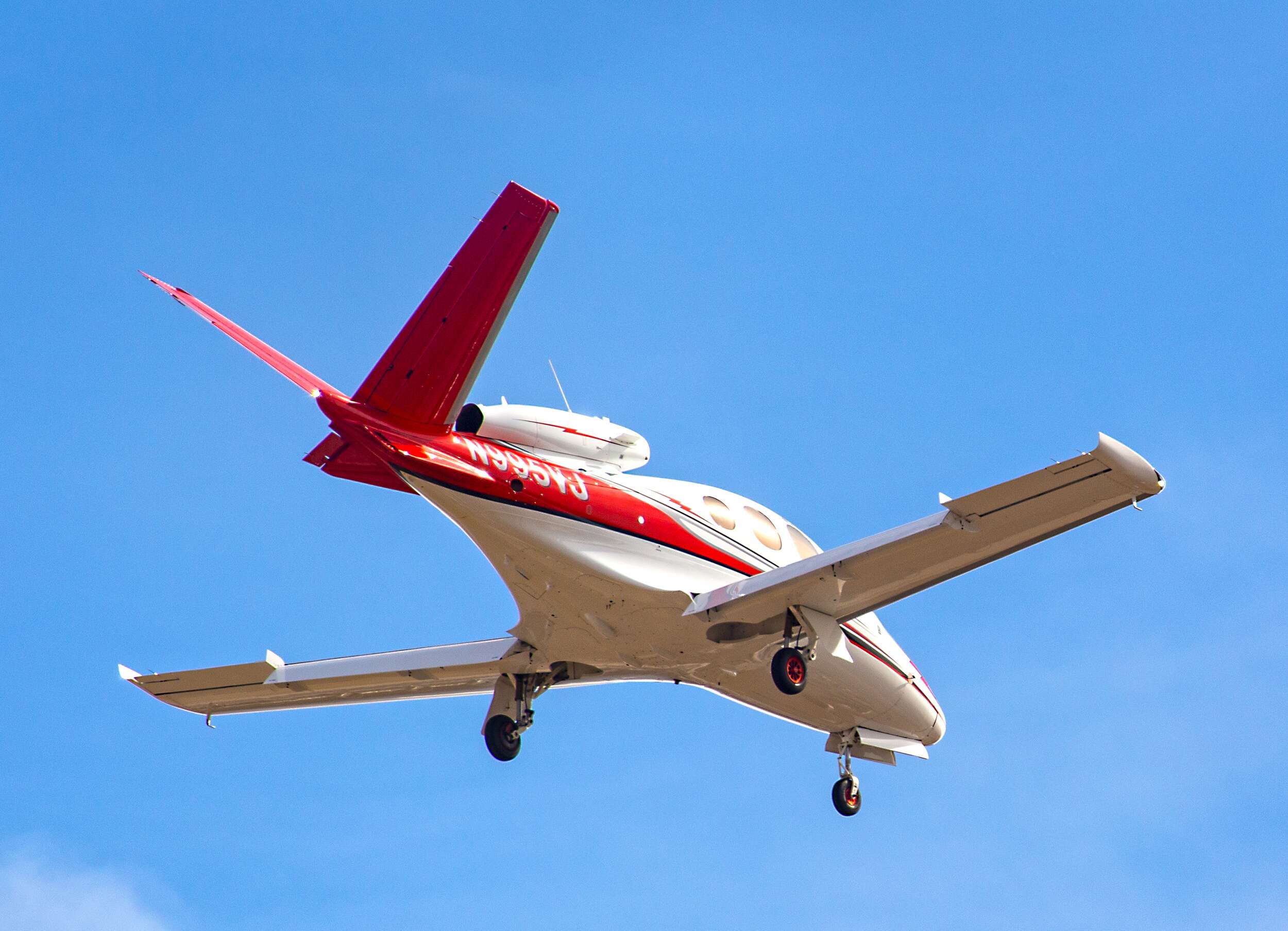 This is a very cool personal jet aircraft! I caught it landing at the Boise airport today. Owner is the company that made Dave’s Killer Bread. This is the first jet aircraft that comes standard with it’s own aircraft parachute! In case of some horrible problem, the parachute is blasted out of the aircraft’s nose and allows the aircraft to float to the ground. While the plane itself will be damaged, the passengers will survive!